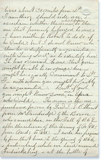 Your letter of the 6th was handed me this morning it having been here these two weeks I having been away did not know it during that time, consequently you will not think hard of what could not be avoided. Your excuses for not answering my last letter sooner were entirely satisfactory. I hope in this sister Fanny has entirely recovered from her sickness and the ones progressing finely. It was quite a surprise I can assure you to hear that you were the father of two little girls7. You say the doctor proposes that you call them No. 1 and No. 2. It seems to me it would be hard to decide which was No. 1 and which No. 2 as it would be to call them names, but I presume in this you have named them to your own satisfaction so I will reserve all of my names for future generations. You advise that I should not go into business until I have considered the subject well and then I shall not do so without the entire consent of both my uncles and other warm friends whom I have made since being in this country. Both of our uncles8 as you are aware are experienced business men and doubtless can give me some good advice. The gentleman with whom I spoke of going into business is one who is well known in the whole western country and is known to be one of everybody with whom I have heard speak of do so to his credit. Both of my uncles have the utmost confidence in him having had him in their employ for a good many years. Suffice it to say although I always look upon the bright-side of everything, I shall give this subject due consideration. I shall not take the step until I am thoroughly convinced it will be to my interest. Farmers are just beginning to reap their wheat crops which they say is almost an entire failure owing to the immense quantity of rain which they have had tho oat and potato too is very unpromising from all that I can learn the potatoes especially as they are rolling very rapidly not more than a half crop of any kind is expected. There is considerable excitement up here just now about great Prep are being made for emigration9 next spring as it is thought too late to start this fall. You must remember me to sister Fanny and the little ones and remember me as ever