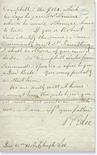 In this letter we find William Campbell ready to join James L. Clark (of St. Louis, Missouri) in opening a store near Denver, Colorado, and mentions his new nieces Florence and Marion Campbell.